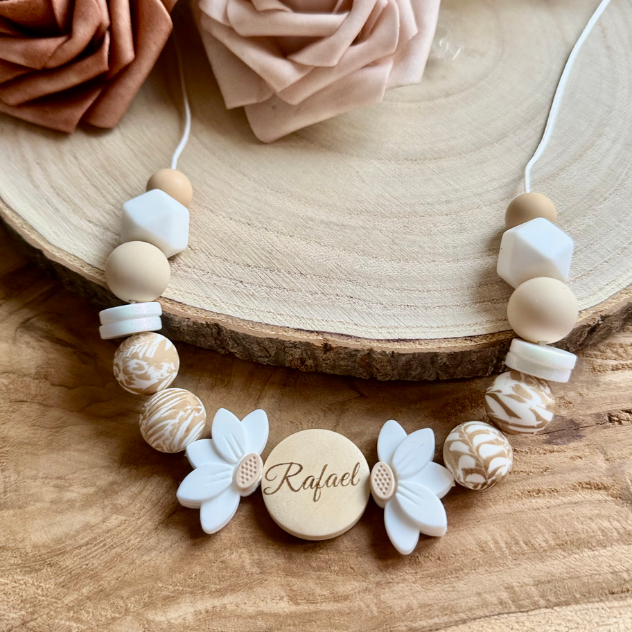 Collier allaitement beige gravé – Personnalisable avec gravure prénom